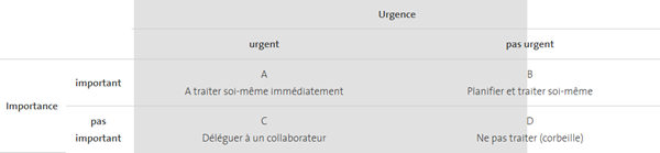 Cette méthode peut s’avérer utile en gestion de crise ou lorsque vous devez conjuguer avec un fort débit de dossiers à gérer dans un délai serré. C’est une façon comme une autre d’établir ses priorités.
